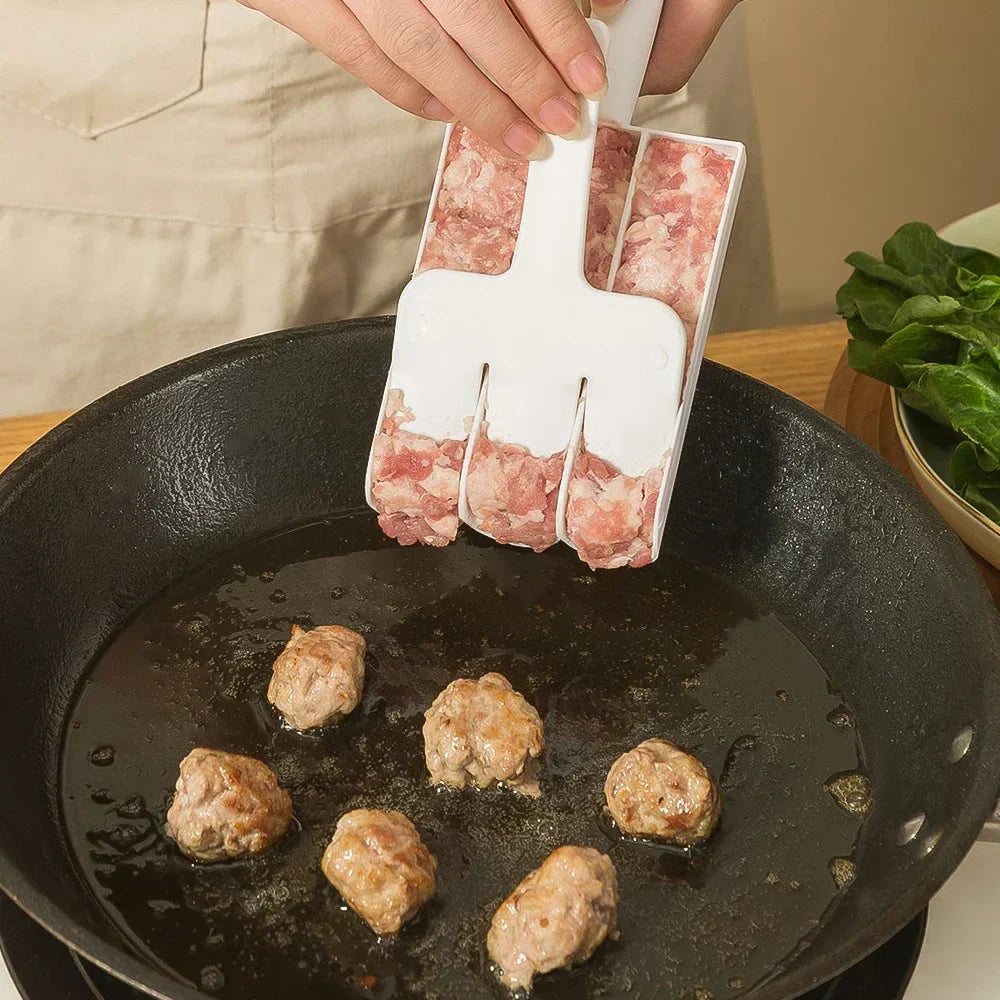 Wir stellen Ihnen QuickScoop™ vor, das revolutionäre Schaufel- und Schiebewerkzeug für gefüllte Bälle, das Ihre Küche in ein Paradies für Fleischbällchen verwandeln wird. Mit seinem innovativen Zylinderdesign und dem klebfreien Schiebemechanismus war die Herstellung perfekt geformter, gefüllter Fleischbällchen noch nie so einfach und sauber. Erleben Sie die Freude am mühelosen Kochen mit einem Gerät, das Sie beeindrucken wird.